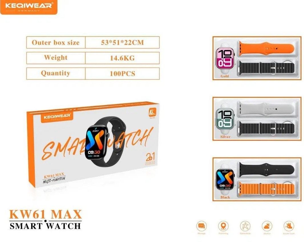 ساعت هوشمند KW61 MAX برند keqiwear با نمایشگر AMOLED و بدنه آلومینیومی