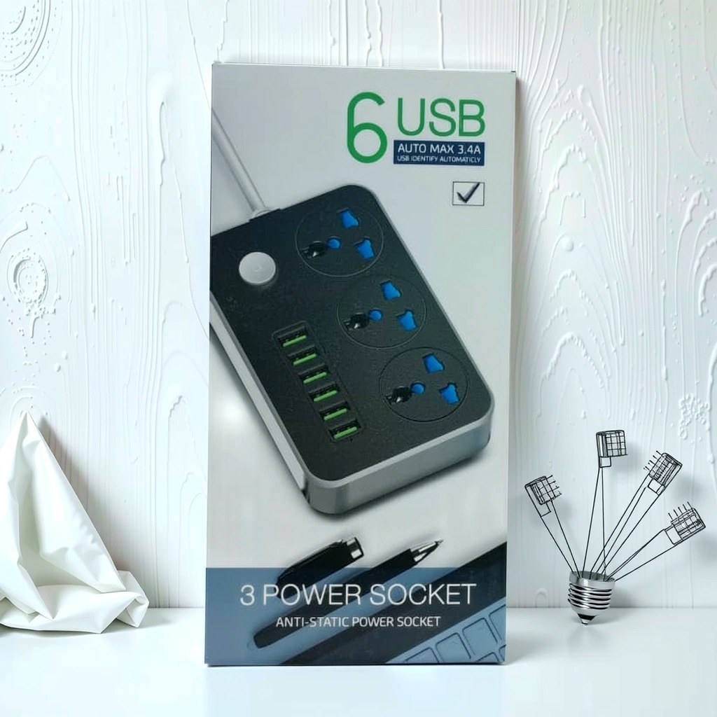 چند راهی برق با ۳ خروجی و کابل ۲ متری و ۶ usb
